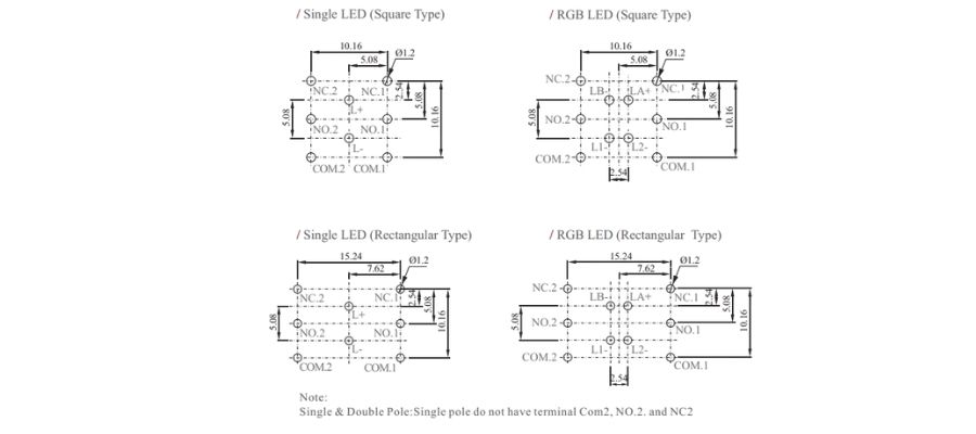 SPDT/DPDT Through Hole Lead Push Button Switch, Panel Mount Push Button Switch.