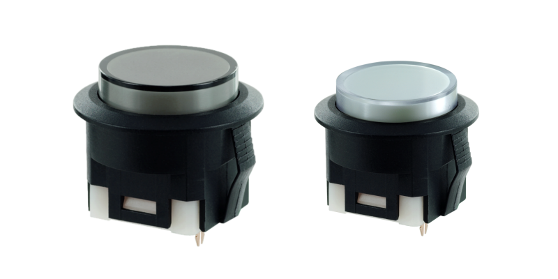 A versatile push button switch series supporting high current and voltage, available in various mounting styles and functions (momentary and latching).