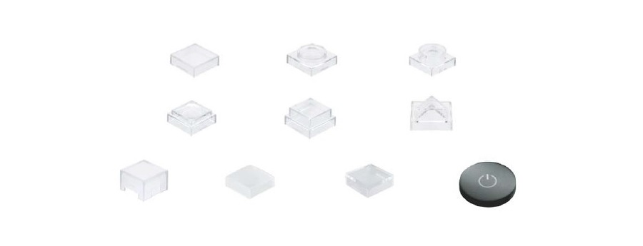 スイッチアクチュエータ(ステム)用12 Smart Capのサイズは12×12mm(12mm角)で、トップキャップの寸法や形状は10種類以上あります。