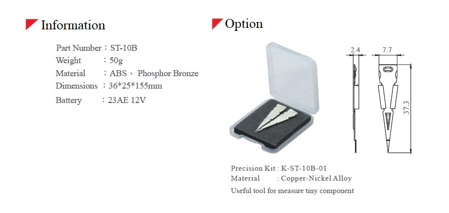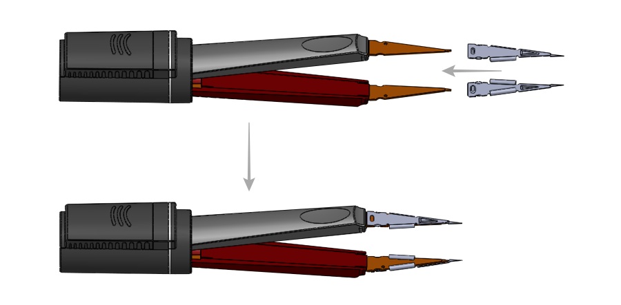 とても簡単です。下の図をご覧ください。清潔な手でK-ST-10B-01精密キットを持ち、もう片方の手でST-10Bテストピンセットを持ち、ピンセットのクランプに取り付けます。