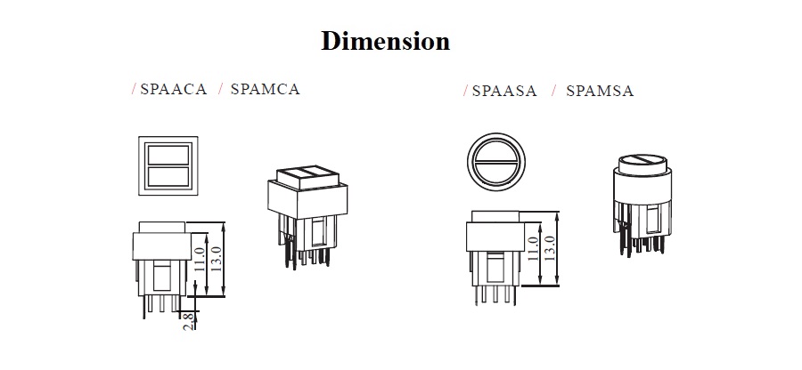 尚圃SPA按鈕開關具DPDT雙極雙擲結構,可控制雙電路。PCB插件腳位設計清晰易用,LED燈腳分離設計讓控制與照光獨立運作,確保穩定與抗干擾表現。
