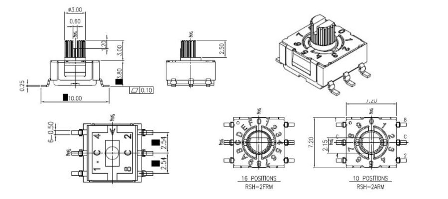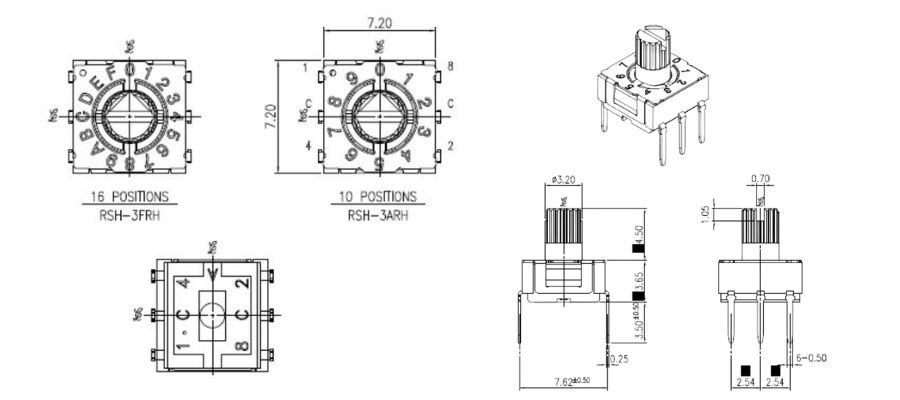 A:開關採用高強度塑膠外殼和鍍錫端子,以增強機械完整性並防止焊錫污染。