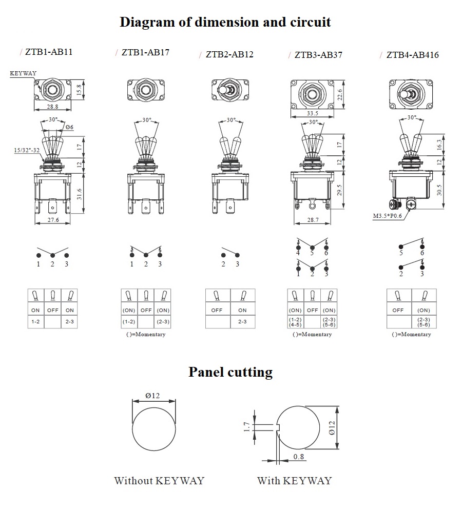 尚圃ZTB電源撥動開關的主要特點大電流承載能力。該系列可支援最高20A電流與多種電壓規格,適合用於主電源或高負載切換應用,並具備50,000次的機械壽命。另提供多種接點配置、端子形式與防水選項,使ZTB搖頭開關成為工業設備、醫療系統與高端電控產品中兼顧安全與效率的理想開關。