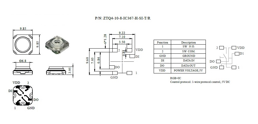 ZTQ4是一款帶有RGB IC LED燈的SMD輕觸按鍵開關,在PCB控制板上同時使用多顆開關可以減少LED佈線的數量。
