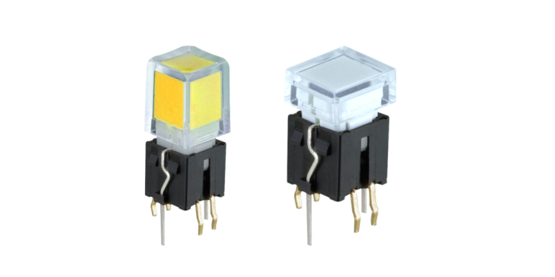 尚圃ZLS67為直立式與90度彎角兩款式的輕觸開關,搭載RGB LED與通孔端子設計,並可搭配多種尚圃的聰明帽蓋與轉接環,呈現多樣外觀效果。非常適合應用於工控、家電與面板指示等領域的背光按鍵方案。
